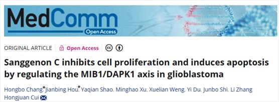 2023年6月19日,国际著名学术期刊《Medcomm》(IF 2023=9.9)在线刊登了西南大学崔红娟教授团队题为“Sanggenon C Inhibits Cell Proliferation and Induces Apoptosis by Regulating the MIB1/DAPK1 Axis in Glioblastoma”的研究论文。
