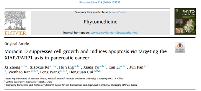 崔红娟教授在中科院医学一区TOP期刊Phytomedicine(植物药学,IF=7.9)在线发表题为“Moracin D suppresses cell growth and induces apoptosis via targeting the XIAP/PARP1 axis in pancreatic cancer”的最新研究成果,该研究发现了一种新的具有抗肿瘤活性的桑树活性成分桑辛素D(Moracin D)在抑制胰腺癌发展进程中的作用并解析了其在抗胰腺癌中的分子作用机制。