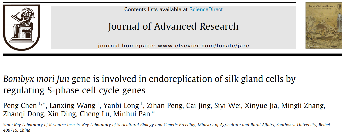 潘敏慧教授课题组题为 “Bombyx mori Jun gene is involved in endoreplication of silk gland cells by regulating S-phase cell cycle genes” 的研究论文。该研究首次解析了JNK信号通路及下游关键基因BmJun在家蚕丝腺细胞核内复制中的功能和作用机制,并基于CRISPR/Cas9技术成功创制了丝腺特异性敲除BmJun基因的转基因品系,为家蚕丝腺改良与新品种的培育提供了重要素材。