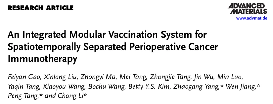 近期材料学领域国际顶尖期刊 Advanced Materials 在线发表了榴莲视频 研究人员题为“An Integrated Modular Vaccination System for Spatiotemporally Separated Perioperative Cancer Immunotherapy”的最新研究成果。该项研究利用重组角蛋白构建了模块化微针系统,实现了肿瘤术后伤口愈合和免疫治疗的时空分割策略,在调节术后免疫微环境等方面展现出良好效果。