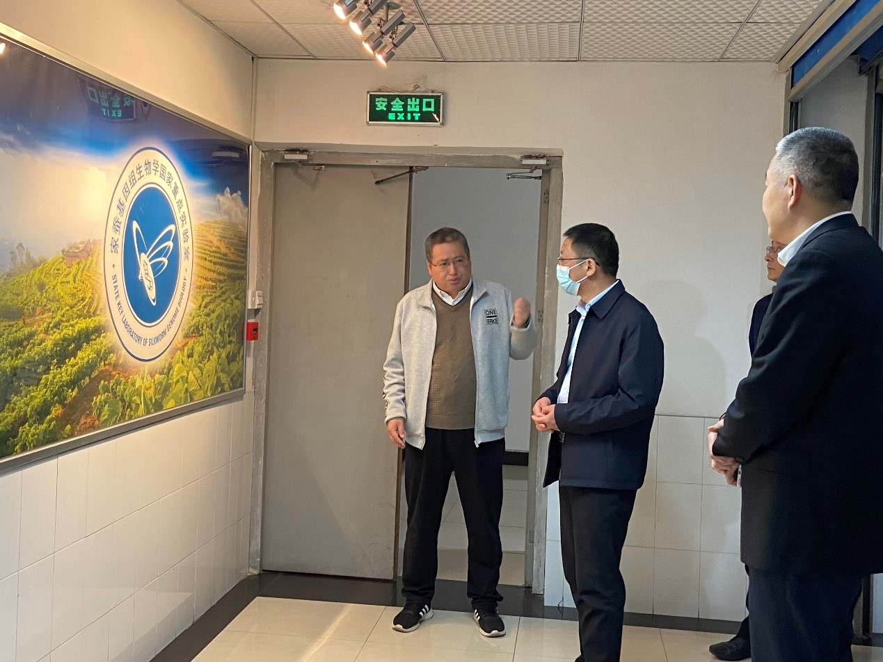 2023年3月21日上午,财政部重庆监管局党组成员、副局长张青一行到家蚕基因组生物学国家重点实验室调研科研经费建设成果及绩效。财政部重庆监管局监管二处副处长陈新、监管二处四级调研员吴仕堃、西南大学葛信勇副校长、财务部董乃斌部长等陪同调研,实验室副主任潘国庆教授负责接待。