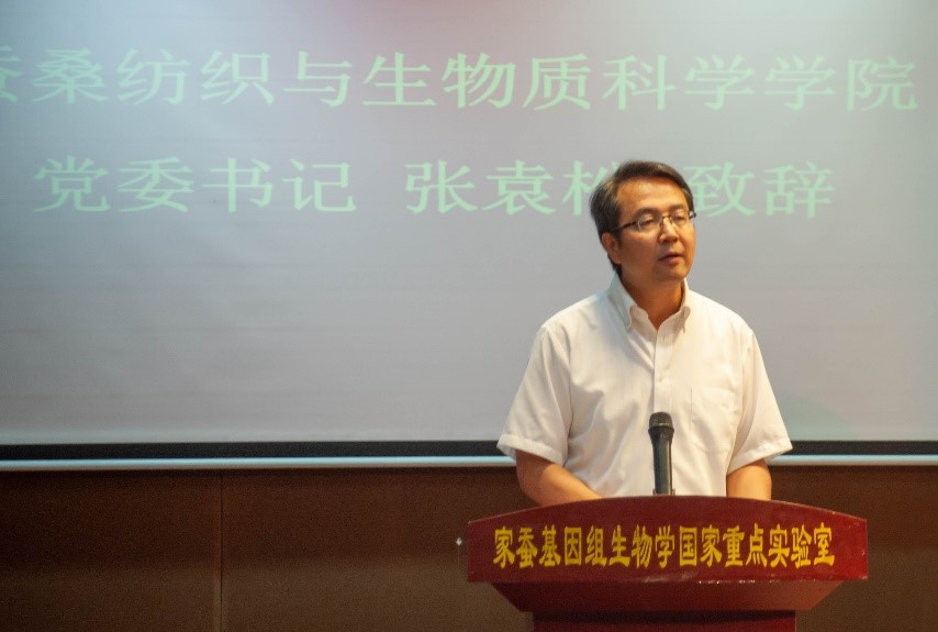最后实验室主任代方银教授进行讲话。他指出以“和平合作、开放包容、互学互鉴、互利共赢”为核心的丝路精神是人类文明的宝贵遗产,中华蚕桑丝绸产业的历史成就无比辉煌,振兴现代蚕桑丝绸是实现中华民族伟大复兴“中国梦”的组成部分。代方银教授希望新生弘扬实验室“团结、奉献、创新、攀登”的传统,珍惜机会,奋发拼搏,开拓创新,在未来的学习和科研道路上取得优异成绩。