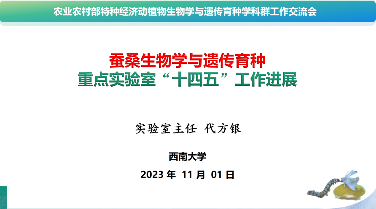 会上,我室代方银主任代表本单位建设的农业农村部蚕桑生物学与遗传育种重点实验室作了工作总结交流,有关专家给予了高度评价。