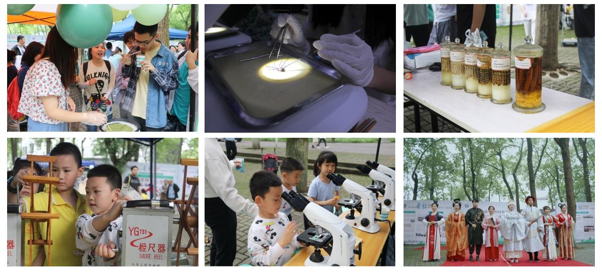 实验室还进行了丰富多彩的线下参观讲解,从“生命科学研究中精彩摄影照片展示”、到“特色桑树种质资源展示”以及“世界最大蚕基因库的奇观”到“蚕桑活性物质的医学转化利用”再到“蚕桑产业的特色产品展示”开展了形式多样的群众性科普活动,展示家蚕国重科技创新成果,让社会公众在参与体验中感受科技的魅力。仅5月28日一天就接待了上百名社会大众,深受好评。5月21日实验室和蚕桑纺织与生物质科学学院在西南大学樟树林开展了主题展览活动,展示了蚕丝文化几千年历史积淀,彰显出蚕桑产业发展所取得的重大成果和多元创新成效。现场的科普区、美食区、游戏区、展品区、体验区体验式地介绍了当今蚕桑产品在科研和生活中的应用,得到了参与者的广泛好评。