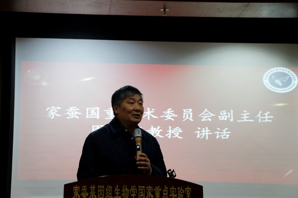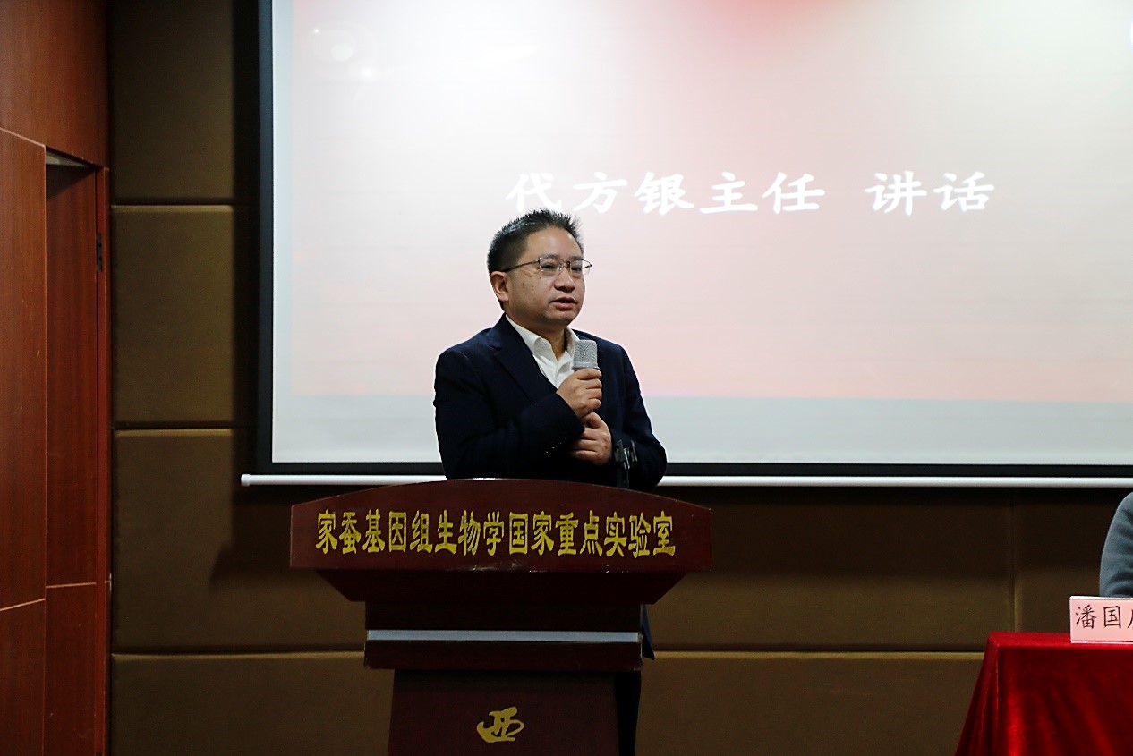 代方银主任在讲话中指出,“范围广”和“力度大”是本次评选表彰的突出特点,覆盖了以国重室为第一单位产出的优秀科研成果,这对于整合优势力量推进国重室优化重组具有重要意义。代主任再次强调了开放、合作的重要性,实验室不仅要持续致力于引领家蚕模式生物化和蚕桑产业现代化改造,更要在新时代切实以“四个面向”导向,加大交叉创新,带动相关领域前沿发展,奋力担当国家战略科技力量。