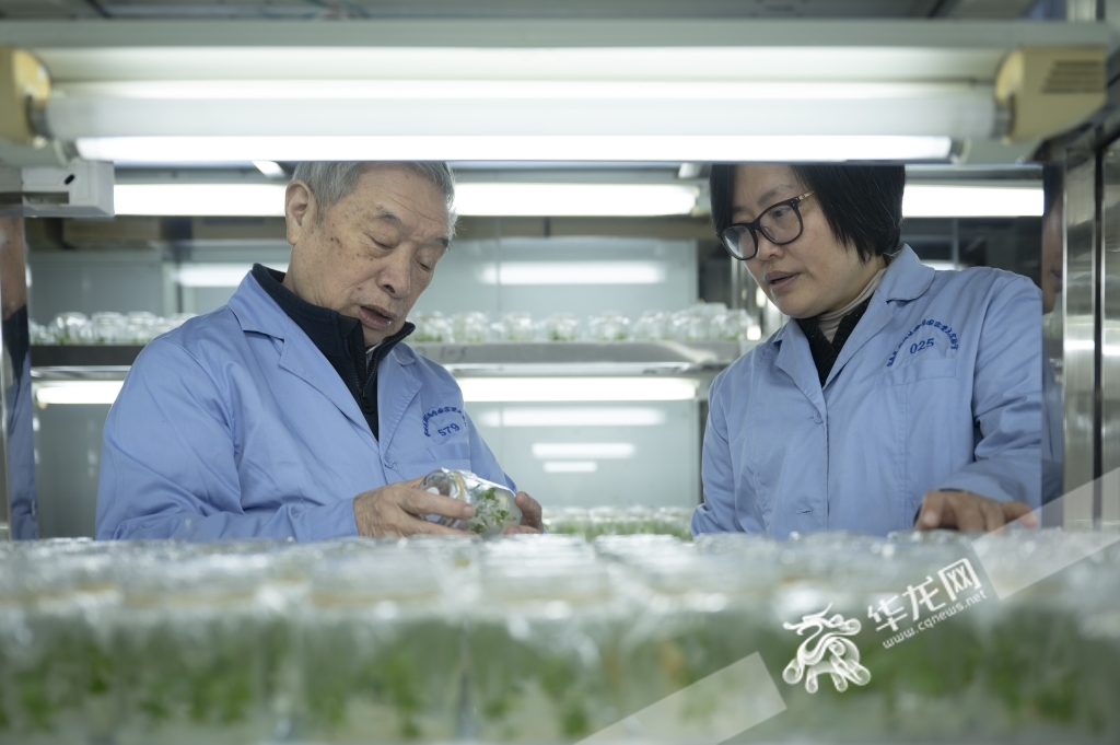向仲怀院士与何宁佳教授正在查看实验室作物。