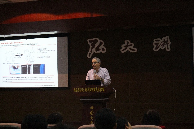 4月25日,美国塔夫茨大学(Tufts university)David L Kaplan教授应我校邀请,在西南大学蚕学宫一楼报告厅做了题目为“Silk-new materials from an old polymer” 的学术报告,何华伟教授主持了本次报告会。