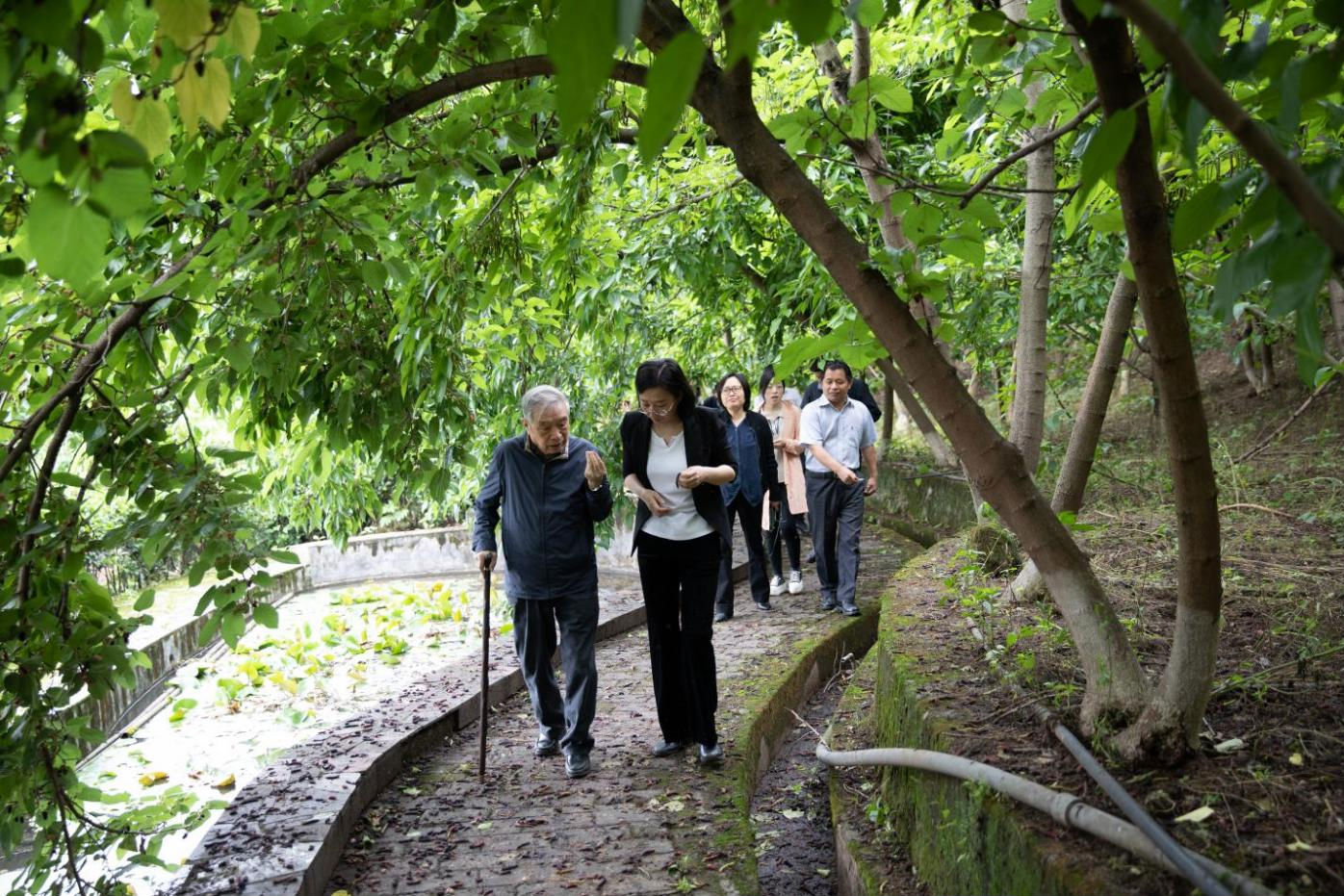 座谈会后,向院士亲自带领李好云常委一行考察了国家桑树品种改良中心重庆分中心。资源昆虫全国重点实验室副主任、桑树品改中心主任何宁佳教授等陪同介绍中心情况,让客人了解桑树资源收集保护、评价研究、新品种培育等方面的进展和成果。走在中心桑林小道,摘下一颗颗草莓香味的新品种桑果递给客人品尝,李常委兴致勃勃,随即向向院士提出合作开发的打算来……