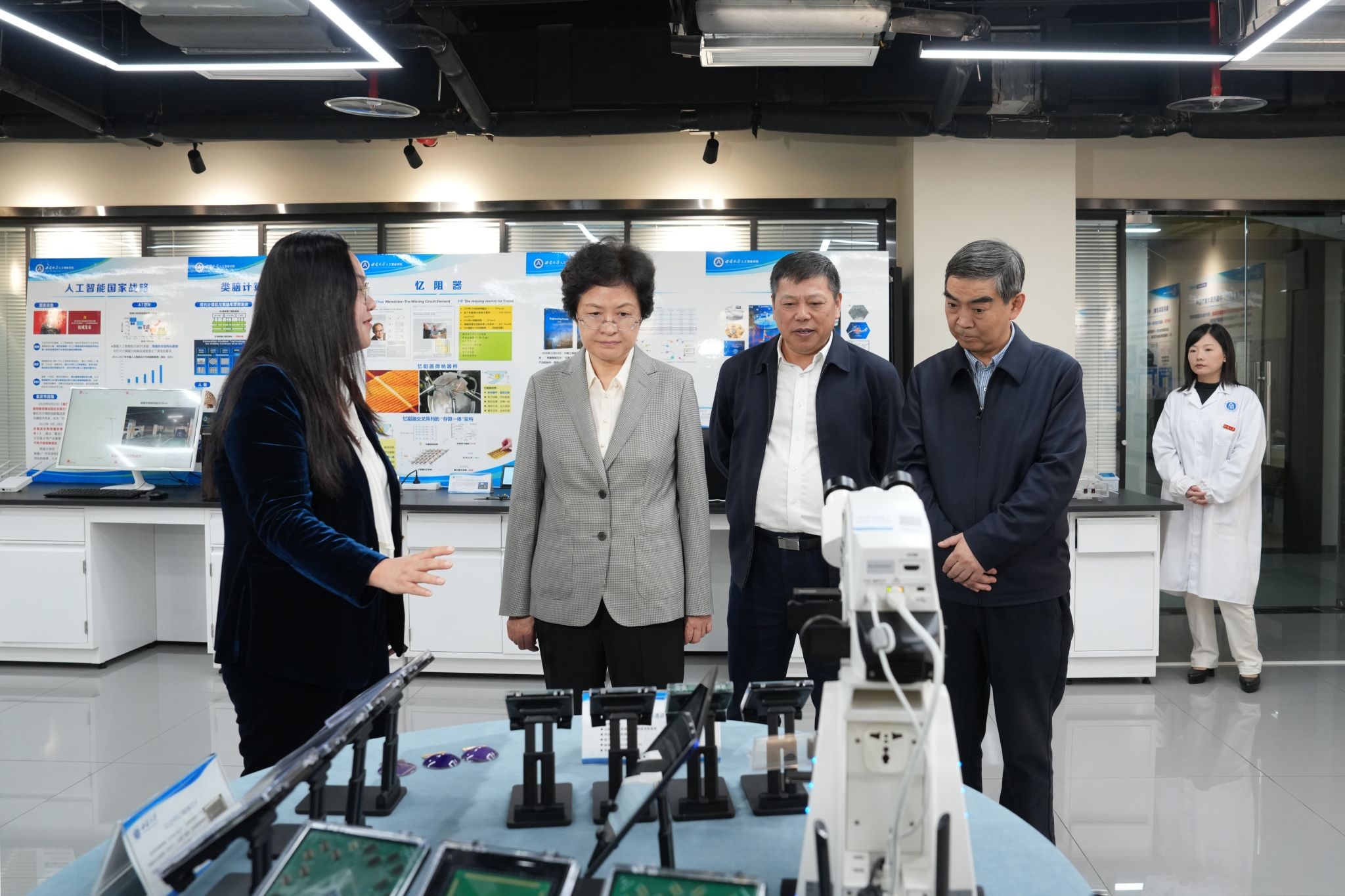 建成世界最大家蚕基因库、中国中西部最大桑树资源圃,绘制首张家蚕基因组框架图、精细图、遗传变异图等成绩给予肯定。她希望实验室继续聚焦资源昆虫领域关键核心技术攻关,充分发挥产学研协同优势,助力乡村振兴和生态建设。程丽华对类脑计算与智能芯片重庆市重点实验室解决核心算法、智能传感器、类脑芯片等关键“卡脖子”问题表示赞赏。她希望,实验室继续开展智能制造和智能装备研发,推动科研成果高效转化,更好服务国家重大战略和现代化新重庆建设。