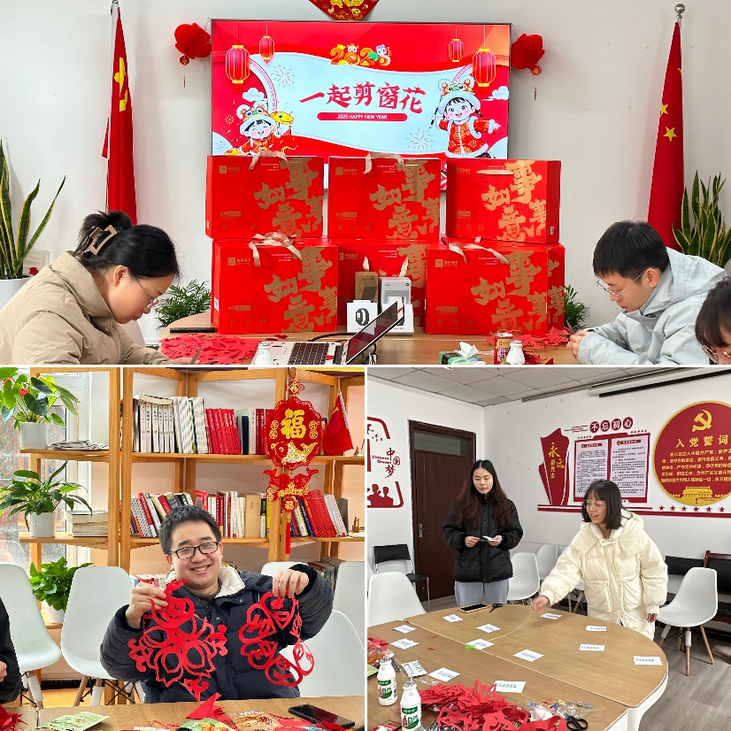 随后,一场别开生面的“剪窗花”活动活动正式拉开活动帷幕。同学们用灵巧的双手剪制出一幅幅精美的窗花。这些窗花不仅展现了同学们的创意与才华,更为实验室增添了喜庆祥和的节日氛围。紧接着,实验室还安排了趣味横生的游戏环节。同学们积极参与其中,争相展示自己的才能,玩得不亦乐乎,欢声笑语充满了整个活动现场。在抽奖环节中,大家巧妙运用自己的智力和巧力去“粘取”自己心仪的奖品。留校过春节的每位同学都获得了实验室精心准备了一份丰富的物资大礼包。