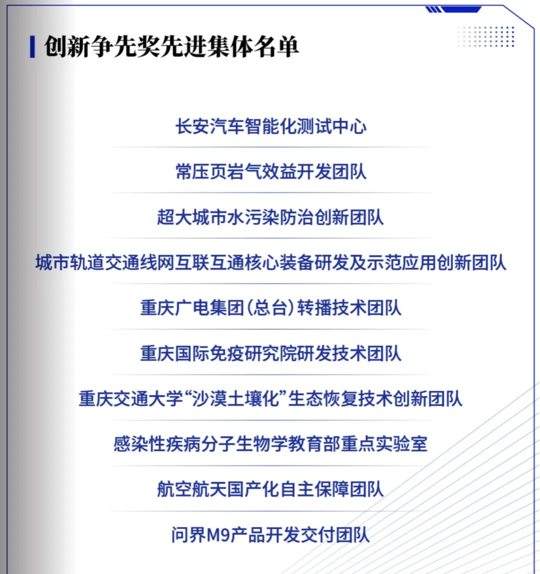 2025年重庆市“创新争先奖”先进集体名单