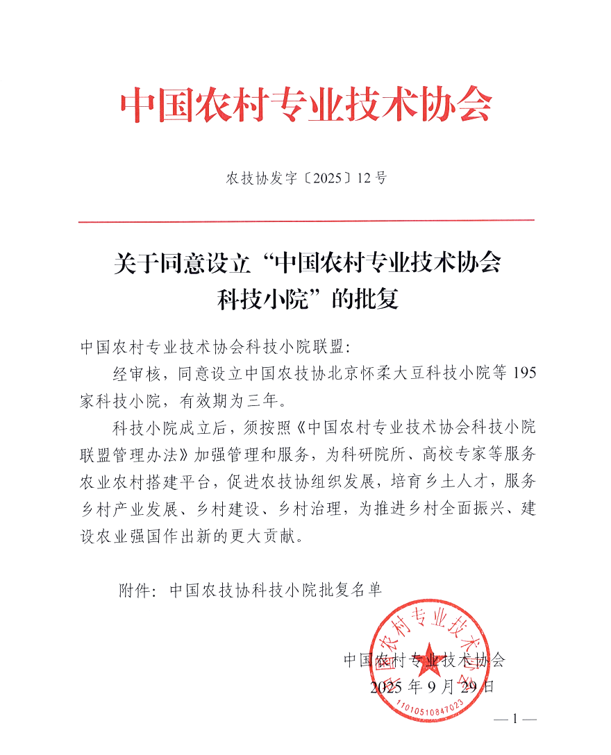 近日,中国农村专业技术协会印发《关于同意设立“中国农村专业技术协会科技小院”的批复》(农技协发字〔2025〕12号),由榴莲视频