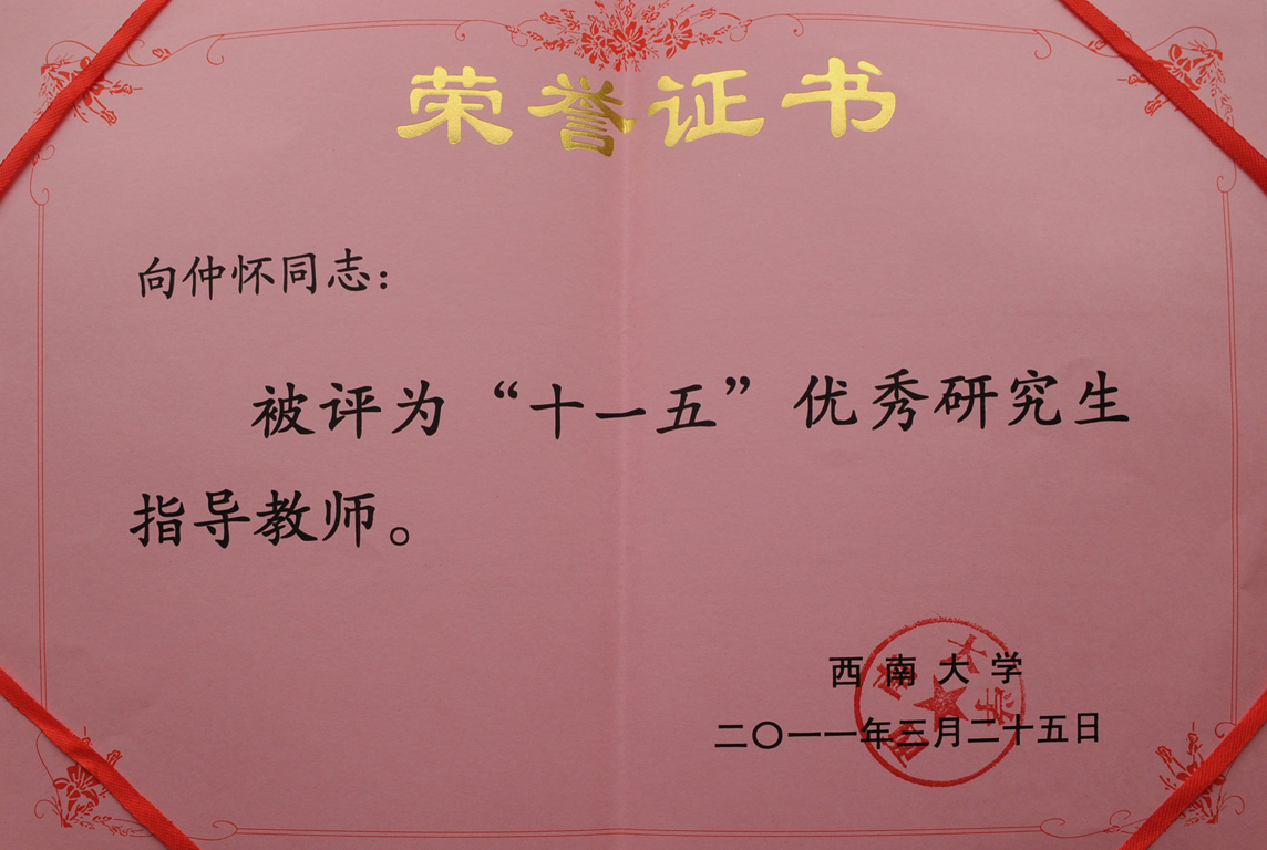 20110325向仲怀院士被评为西南大学十一五优秀研究生指导教师