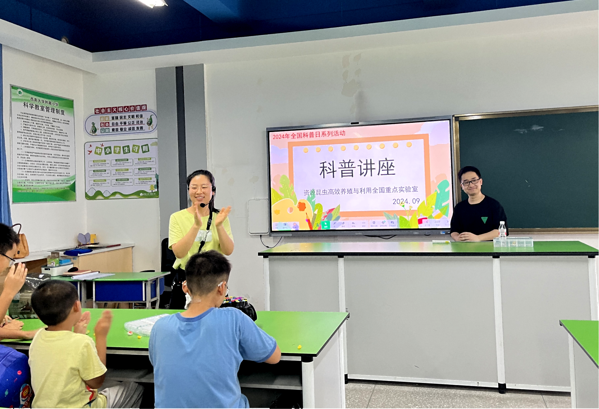 (以下简称为实验室)作为全国科普教育基地,积极响应号召,以习近平新时代中国特色社会主义思想为指导,以本次全国科普日主题“提升全民科学素质,协力建设科技强国”为引领,弘扬科学精神和科学家精神,传播科学思想,展现科技魅力,开展“探秘家蚕王国”蚕桑科普讲堂活动,取得圆满成功。